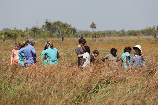 1 Students, teachers and members of the Sharing Place, Learning Together team search for water chestnuts east of Maningrida