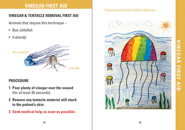 3 Pages from the First aid pocketbook created by Maningrida College students, describing first aid treatment for box jellyfish stings*