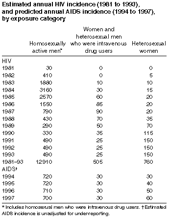 Methods Our analyses were based on AIDS cases diagnosed by 30 June 1994 and reported to the National AIDS Registry (NAR) at the National Centre in HIV Epidemiology and Clinical Research by 31 March 1995 in men with a history of homosexual contact, including those who were intravenous drug users. These AIDS incidence data were adjusted for the reporting delay between the time of diagnosis to the time of entry of the case on the NAR.9 All estimates of HIV incidence were adjusted for underreporting of AIDS cases to the NAR, which is currently estimated to be about 10%.3
