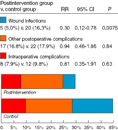 Statistical analysis | Statistical calculations were performed using SPSS for Windows.14 Normally distributed continuous variables were compared by t tests, dichotomous variables by χ2 tests. Ordinal variables were compared with the Mann-Whitney U test. Logistic regression was used to obtain a multivariate analysis of factors predictive of wound infection. | ||||||||||||||||||||||||||||||||||||||||||||||||||||||||||