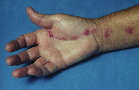 If cellulitis does not respond to empirical β-lactam therapy, then environmental or occupational exposure to unusual pathogens should be considered (Box 4). Infections with these organisms may also present as single ulcers, nodules or nodular lymphangitis (case history, Box 6). Tissue biopsy may be required for diagnosis (Box 1).