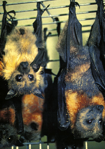 Subsequent seroepidemiological testing for Hendra virus in a large number of human contacts of these three people was completely negative.5 Seroepidemiological studies of more than 2000 horses and more than 5000 samples from 46 other animal species in Queensland also failed to identify a single Hendra virus infection.6 However, antibody to Hendra virus was found in 20 of 224 serum samples from four species of fruit bats from as far north as Madang, Papua New Guinea, and as far south as Melbourne.7 Fruit bats (Box 2) now seem a likely source of Hendra virus, although they appear to be asymptomatically infected.