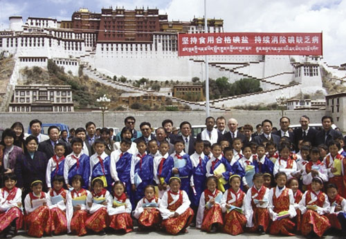 In 1997, the 2nd Biennial National IDD Surveillance Survey revealed that the elimination program had achieved significant progress in most provinces,12 with the exception of Tibet, which was lagging well behind the national target and timeframe for all control criteria. We were asked to assist with the development of a project, and WHO played an important part in the initiation of the project. In June 1998, a request for support was submitted to WHO by the Tibet Department of Health. WHO responded positively, stating it would fund the activities proposed for the first year (1999) if other agencies provided evidence of continued support of the project in 2000 and beyond. UNICEF and AusAID agreed in principle to support the proposal, and the Department of Disease Control in the Chinese Ministry of Health and the China National Salt Industry Corporation also made a commitment to participate and guaranteed resources for the project. WHO commissioned a Feasibility Study undertaken by a multidisciplinary team representing major stakeholders, and led by one of us (C J E). The team confirmed the magnitude and severity of the IDD problem in Tibet and further defined the support required in their report to WHO.13 At this stage, however, WHO revealed that it would not be able to support the project from its biennial budget and left the project in abeyance. By default, ACCIDD approached AusAID directly in Canberra, asking for financial support. AusAID commissioned ACCIDD, using its own resources, to develop the Project Design Document for a three-year project.