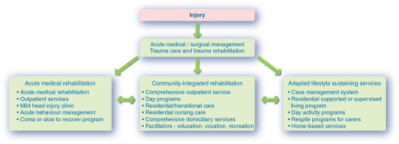 TBI is a heterogeneous disorder of major public health significance. Rehabilitation services, matched to the needs of people with TBI, as well as community-based non-medical services, are required to optimise outcomes over the course of recovery. Both the person with TBI and their social support networks should have access to rehabilitation services through the entire course of recovery, which will continue for many years after the injury. The services required will alter as the person's needs change over time. Survivors of severe TBI face the challenge of resuming a meaningful life for themselves and their families. However, severe TBI is not curable, and medical and rehabilitation management may not ultimately be able to provide the improvement desired by the patient and his or her family.