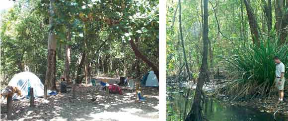 The Noah Beach camping ground lies in a lowland rainforest and is bounded by two small creeks, which had been reduced by prolonged dry weather to a series of pools cut off from the ocean by dunes.