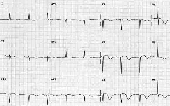 1 Electrocardiogram, showing delayed R-wave progression and inverted T waves in the anterolateral leads