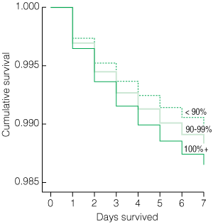 3 Seven-day survival* after emergency admission stratified by hospital occupancy on the day of admission
