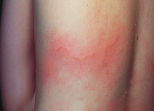 The proportion of patients with itch, redness or rash at 24 hours was similar in both groups (Box 7). Two patients (one in each group) developed bullae within 48 hours of the sting; these took 1 to 2 weeks to resolve.