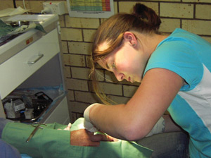 Working in a rural setting has several distinct advantages for doctors-to-be. First, they learn how to cope in a situation with limited resources. Australian rural clinics are relatively well equipped, but simple referral is often not possible because of remoteness. Secondly, although students gain experience in all the different specialties during their 2-year rotations in the Netherlands, including their regular 10-week rotation in general practice, the overseas elective is the only remaining opportunity to practise medicine in a broad sense. These facts motivate students to take up an elective in rural Australia. Thirdly, in rural health, general practitioners are often also doctors at the local hospital, and the more remote the area, the more likely a GP is to be regularly engaged in complex and procedural care. In the Dutch health care system, there is a distinct separation between care provided by GPs and hospital care. Thus, general practice in rural Australia offers a wider scale of medical exposure. As a result, students can enhance their practical skills, like suturing (Box 5), taking blood samples, and applying plaster bandages, under the supervision of GPs. This hands-on approach is highly appreciated by students.