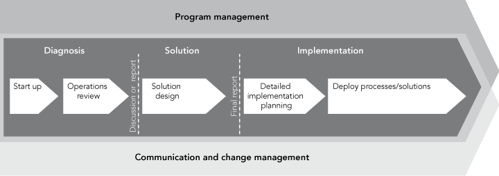 A panel of national consulting firms (Accenture, KPMG, PricewaterhouseCoopers and PA Consulting) was retained to provide expert advice to AHSs on undertaking process re-engineering and to facilitate redesign working parties. The firms also assisted in coaching local hospital managers to give them the skills necessary to implement the solutions. They brought a range of business process redesign and re-engineering methods to the CSRP, including “lean thinking”, “six sigma” and the “theory of constraints”.7-9 Staff appreciated the neutrality of external facilitators who were often able to overcome territorial behaviours.