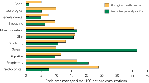 1 Unadjusted rates of problems managed in urban Aboriginal health service compared with Australian general practice