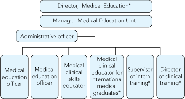 A focus on enhancing and ensuring adequate medical education for junior doctors led to additional staffing appointments in the RMH Medical Education Unit (MEU), the most important of which were the Director of Clinical Training (DCT) and an additional Medical Education Officer (MEO) for individual20 and system-level21 support (Box 1). The program relies heavily on the skills, expertise and personalities of the MEOs, DCT and supervisor of training. The MEU monitors trends and numbers of doctors seeking assistance; assists with planning of preventive programs and resource allocation; and oversees the competency of junior medical staff in liaison with the medical colleges and the Postgraduate Medical Council of Victoria. The MEOs and medical clinical skills educator provide mentoring, pastoral care, clinical skills training and career advice, and assist with designing education programs for junior medical staff. The medical clinical educator for international medical graduates (originally an international graduate), supervisor of intern training and DCT are senior medical staff who perform mentoring and educative roles for junior medical staff. MEU positions are mostly part-time appointments.