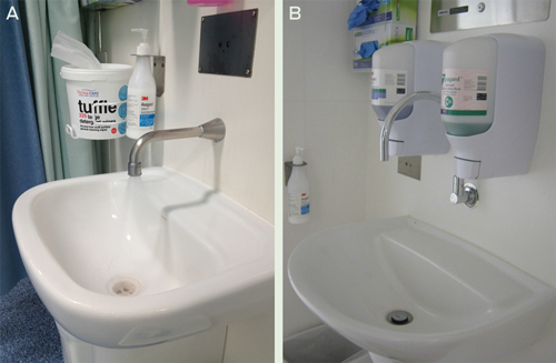 Sink inspection revealed aged and deteriorating porcelain, even though sinks were only installed in 2005. Sink design did not comply with Australasian clinical design standards,8 with a small, shallow sink and a tap that directed water over the drain (Box 2). The design of the ICU sinks led to poor use for hand hygiene (although measured hand hygiene compliance using alcoholic hand rub was around 70% within the unit) and the potential for organisms residing down the drain to be splashed back onto staff hands or contaminate patient areas. It was also revealed that the handwashing sinks had been used incorrectly, with staff disposing clinical waste and residual antibiotics directly into drains. Further enquiry also revealed that a single brush had been used to clean down the drains of all sinks in the ICU without disinfection between sinks.