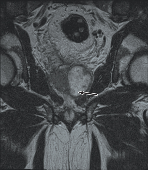 Further questioning found that the patient had a recent history of travel to South-East Asia and previous use of fluoroquinolone antibiotics. He was treated with intravenous cephazolin but his temperature continued to spike above 38°C. Magnetic resonance imaging (MRI) of his pelvis revealed a large prostatic abscess (Box 1), which was drained by transurethral resection. Tissue culture was consistent with the MDR E. coli previously isolated.