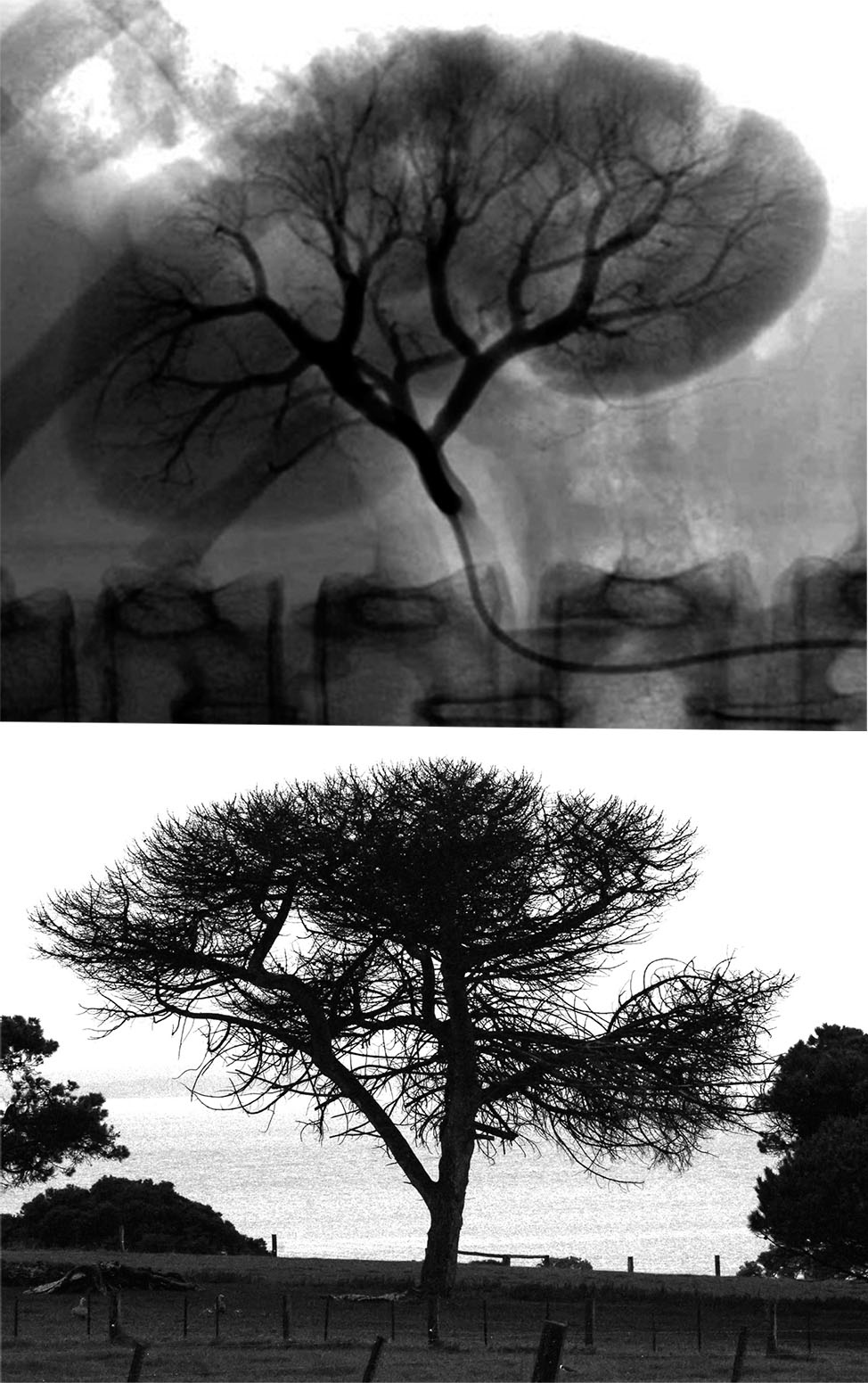 If, under sterile conditions, using local anaesthesia, and after enquiring about allergy to iodine, you punctured the femoral artery in the left groin using the Seldinger technique, floated a soft hook-catheter over a guide wire along the iliac arteries, both external and common, and advanced it on up the aorta for, let’s say, 16 centimetres, so as to position the catheter’s tip adjacent to a large ostium on the right wall of that great vessel, just below the transpyloric plane, where it would sit wavering, like a leaf in a breeze, disturbing the laminar flow of maybe three, or maybe more, litres of blood every minute, and you advanced the catheter through the orifice and into the right renal artery, without dissecting its endothelium, so that the tip was positioned a few millimetres within the lumen of the artery such that it was possible to inject without force an amount of about five millilitres of Iohexol contrast medium, sufficient in volume to visualise by radiological image intensification the main trunk of the renal artery, its first order segmental arteries, second order interlobar arteries, third order arcuate end-arteries, their interlobular arteries and branched afferent glomerular arterioles, sufficient for a nephrogram but not enough to induce tubular damage or necrosis, then, if you did this, you would have performed angiography, produced a renal angiogram, and plagiarised a bare deciduous tree not yet budded in the first few days of spring.