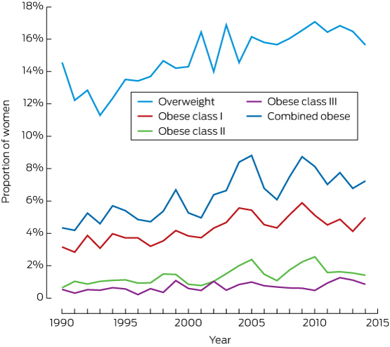 The new We have documented the rise in prevalence of overweight and obesity among pregnant nulliparous women in Australia over a 25-year period. The rise was associated with increasing rates of adverse maternal and neonatal outcomes, particularly gestational diabetes, fetal macrosomia, and pre-eclampsia.