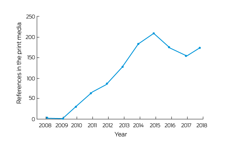 Trends in appearances of the term “Mamil*” in major print media in England, Australia, and elsewhere, excluding mentions by industry and retail outlets, were assessed by examining records in the Factiva media database (https://www.dowjones.com/products/factiva) from the earliest reported use of the term.