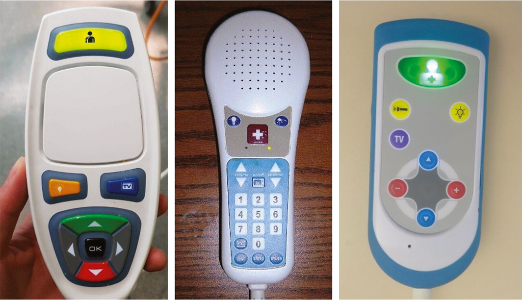 We undertook a descriptive study of hospital equipment during 2018 using a pragmatic snowball design to collect data. International systematic sampling was not possible in the time available; we instead used personal and professional health care contacts to initiate data collection via text messages and WhatsApp and Facebook groups (Box 2). Contacts were requested to provide photos of the faces of hospital call bells on plain backgrounds without visible local identifying features or patient or staff information. The location of each device was requested (town/city and country); there were no geographic restrictions. No patient or personal data were collected.