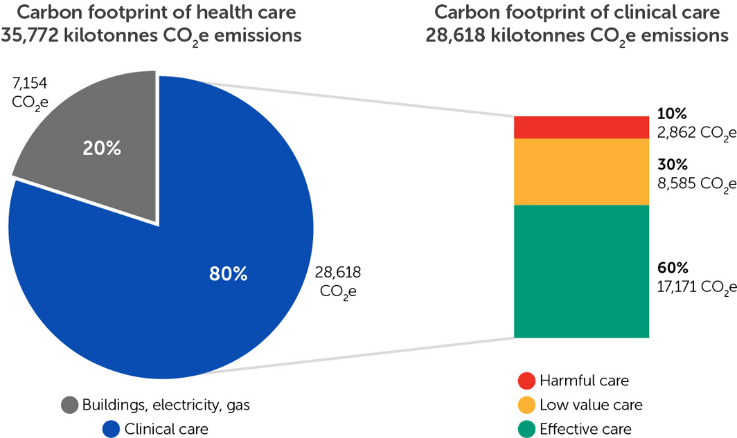 Greening hospitals’ electricity and water supplies and ending use of fossil gas is essential, but clearly changes to models of clinical care are also needed. This is where two key challenges to health system sustainability — low value care and climate risk — intersect, and why better value, low carbon emissions models of clinical care are urgently needed.