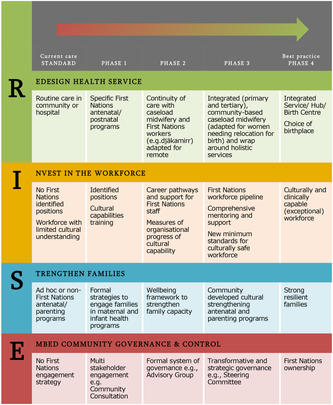 Box 2 – The four pillars of RISE and possible implementation phases for Birthing on Country maternity services