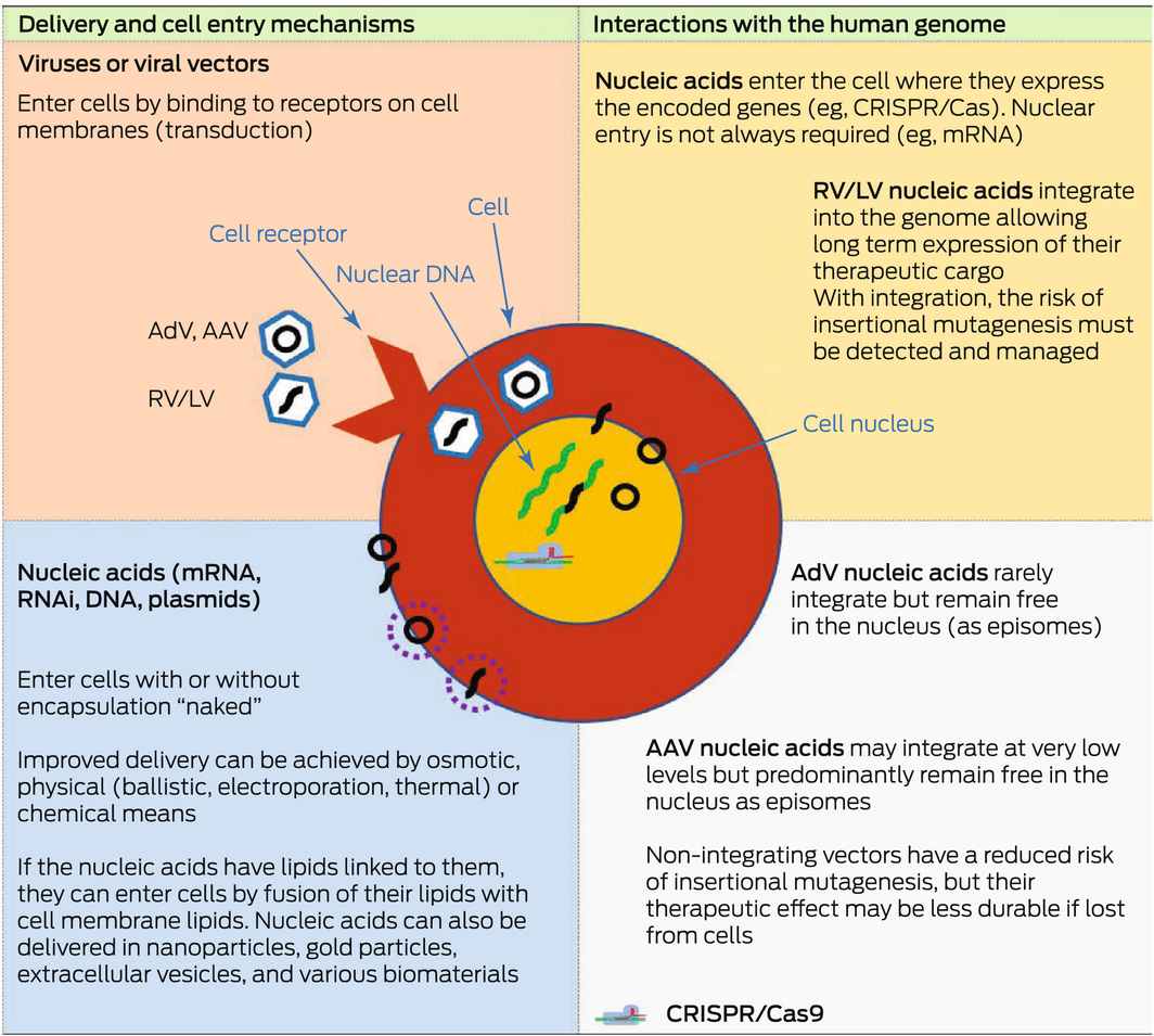John Rasko acknowledges grant funding from the National Health and Medical Research Council (Investigator Grant 1177305) “Driving clinical cell and gene therapy in Australia” and from Therapeutic Innovation Australia. These funding sources support John Rasko in developing the fields of cell and gene therapy in Australia, and had no specific role in this submitted work. We thank Michael Dornbusch and Heidi Mitchell of the Office of the Gene Technology Regulator for providing advice and guiding the development of this article. We also thank Charles Bailey and Bijay Dhungel of the Gene and Stem Cell Therapy Program at Centenary Institute for providing advice and assistance with the illustrations. The views expressed in the article are those of the authors alone and do not represent an official view of the Australian Government, the Gene Technology Regulator, New South Wales Health, the Sydney Local Health District or the Royal Prince Alfred Hospital.