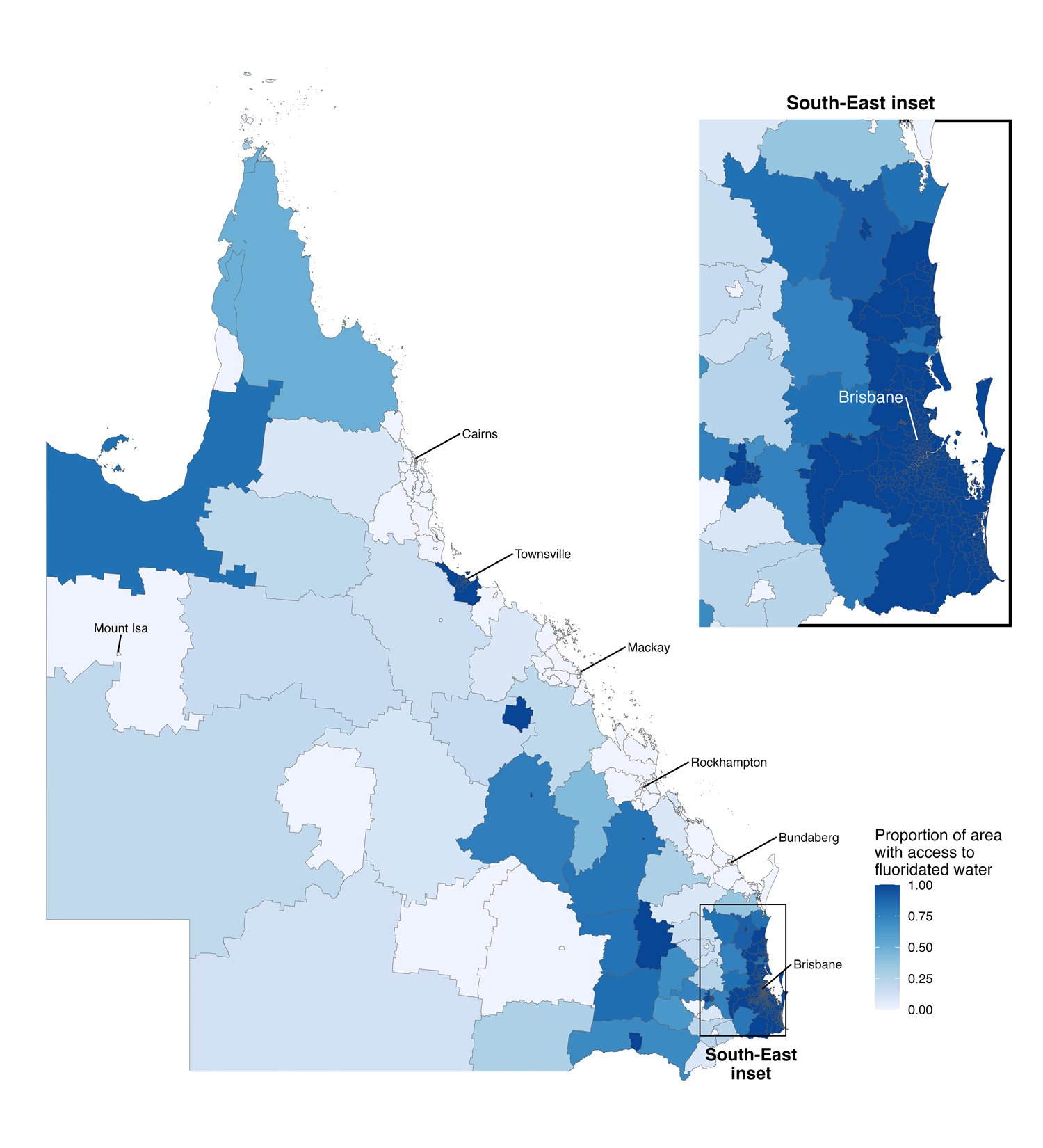 The new: Almost 80% of Queenslanders have access to fluoridated water. However, access is concentrated in the southeast of the state, and fluoridation is more likely in areas of higher socio‐economic status.