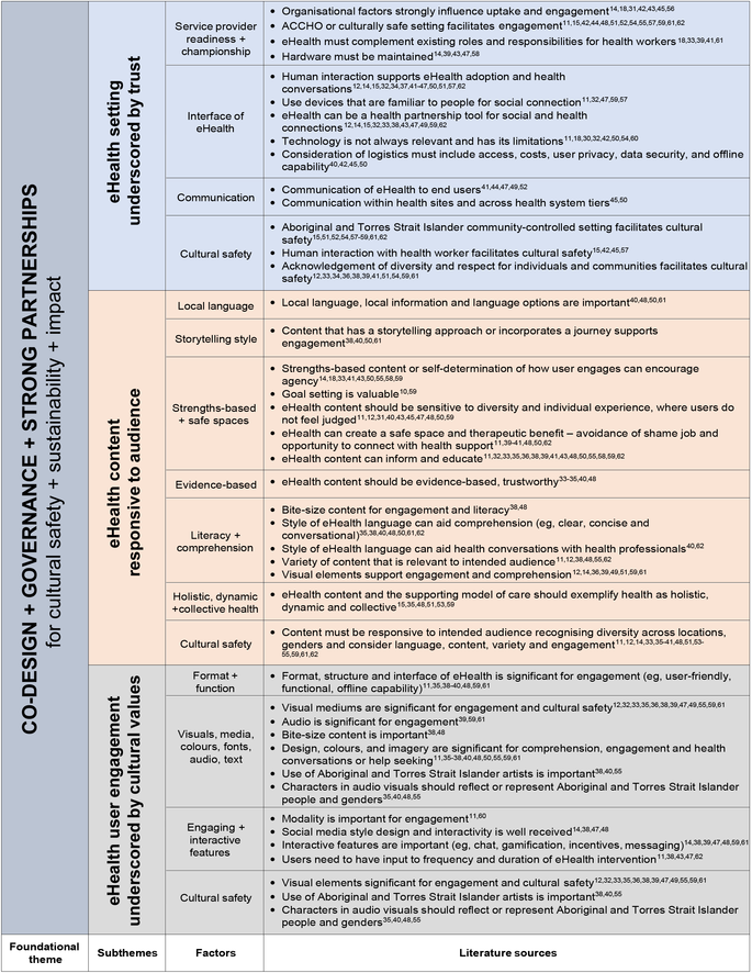 References to cultural safety were also consistent throughout the literature regarding the pragmatics of eHealth design, development and implementation with end users (subthemes 1–3).