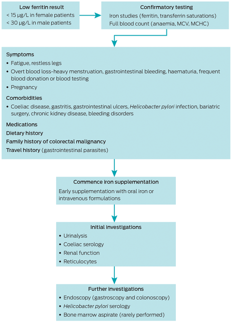 - 11. Low MS, Grigoriadis G. Iron deficiency and new insights into therapy. Med J Aust 2017; 207: 81‐87. https://www.mja.com.au/journal/2017/207/2/iron‐deficiency‐and‐new‐insights‐therapy