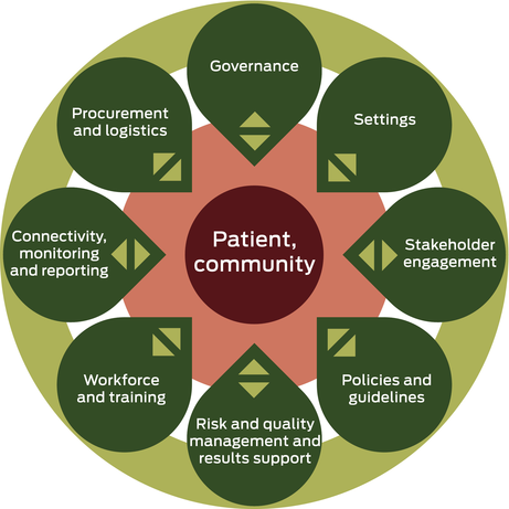 The established relationships, First Nations people-led governance, decentralised asset network and infrastructure provide the opportunity to evaluate, implement and scale up POC testing for other priority infections in these communities (including influenza, respiratory syncytial virus, sexually transmitted infections, hepatitis C, human papillomavirus and group A Streptococcus), and serves as a model for future emergency responses for infectious diseases with epidemic potential. Going forward, establishing sustainable funding models to support all facets of the program (Box 2) will be critical to the wider adoption of decentralised molecular testing in Australia and other settings.
