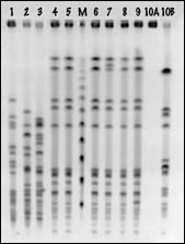 Lane 10: E. faecalis (non-ABC) isolate from renal patient.