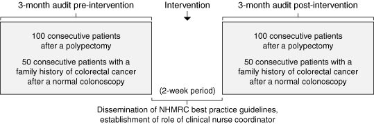 Main outcome measures: Change in concordance of decisions with NHMRC guidelines; and effect on number of follow-up colonoscopies.