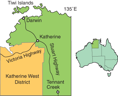 The trial was conducted in two remote regions of the Northern Territory which differ significantly — the Tiwi Islands and the Katherine West region (Box 1). The Tiwi Islands cover 7900 km2 and are located about 60 km north of Darwin. An estimated 90% of the population of 2000 are Aboriginal.6 The two islands contain three main communities and a number of smaller settlements. The Katherine West region covers 162 000 km2 and includes several large Aboriginal communities and smaller outstations, a number of cattle stations, and a small township. The southernmost community is about 890 km from Darwin. About 85% of the regional population of 2800–3000 are Aboriginal, drawn from 10 language groups.5 By Australian standards, the health and socioeconomic profiles of both regions are very poor.