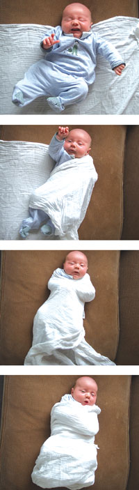 Wrapping a baby for sleeps until around 6 months of age is recommended. |