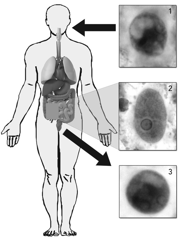 Amoebiasis, a disease caused by the intestinal protozoan parasite Entamoeba histolytica, is the third leading parasitic cause of death in humans after malaria and schistosomiasis. Globally, it is responsible for 40 000–100 000 deaths a year.1,2 E. histolytica has a worldwide distribution and is endemic in Australia, with locally acquired disease occurring in northern Australia (predominantly in Indigenous people) and, recently, in Sydney, among men who have sex with men (MSM).3-5 Other high-risk people in Australia include immigrants from countries of high endemicity (eg, India, South-East Asia) and travellers returning from such countries.1,6
