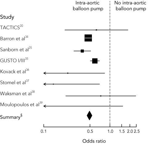 2 Comparison of treatment with intra-aortic balloon pump (IABP) with no such treatment in published studies of patients with ST-segment-elevation myocardial infarction and cardiogenic shock