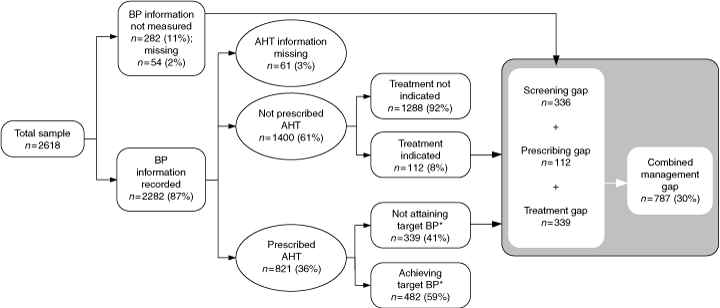 3 Distribution of patients with data on antihypertensive therapy (AHT), and management gap*