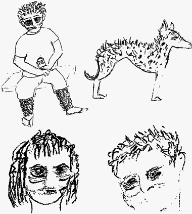 The patient’s hallucinations became atypical on “Black Saturday”, 7 February 2009, a day of intense heat and bushfires in the southern Australian state of Victoria. Bushfires raged in 14 regions across the state, resulting in 173 deaths.1 The patient lives in an area affected by the fires and was evacuated from her home on Black Saturday. That day and subsequently, she experienced hallucinations that were horrific in nature to her, such as seeing a prickly coat on her short-haired dog, spiral wire-like hair protruding from the heads of bald family members, and their faces beginning to melt, “like wax dripping”. She saw people’s legs covered with curly, black, wiry hair. Despite her visual impairment, the patient is a talented artist and has drawn her disturbing hallucinations (Box 1).