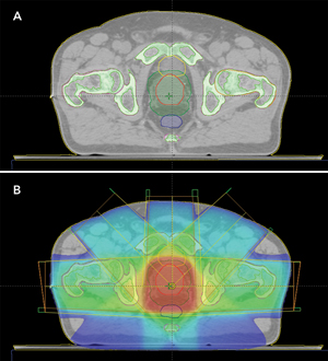 Dose planning for prostate radiation therapy is performed using computed tomography (CT) scans that provide the electron density information needed for individual patients’ radiation dose calculations.