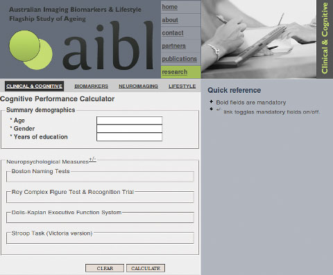 - 3. The Australian Imaging, Biomarker and Lifestyle (AIBL) Flagship Study of Ageing [website]. http://www.aibl.csiro.au/ (accessed Aug 2010).