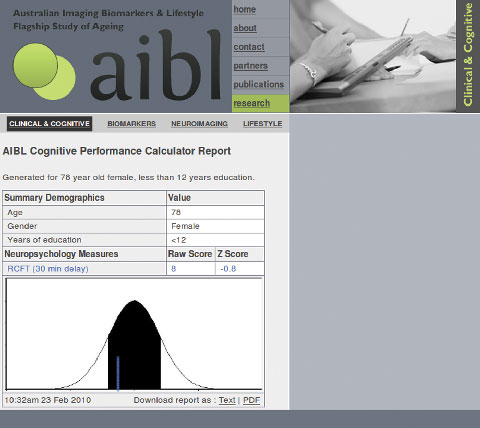The Australian Imaging, Biomarkers and Lifestyle (AIBL) Flagship Study of Ageing2,3 collected neuropsychological data on more than 700 healthy Australians. This AIBL dataset presents a unique opportunity to provide reliable and representative normative data ranges for clinicians and researchers working with older Australians.