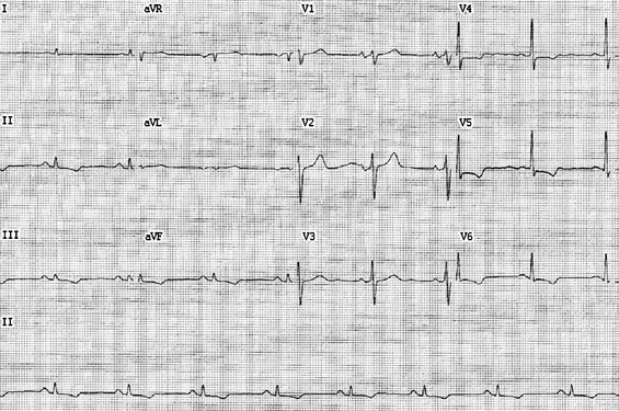 A 64-year-old man with no significant past medical history presented to a district hospital in June 2012 with a 3-week history of palpitations and breathlessness. The electrocardiogram (ECG) showed an irregularly irregular wide complex tachycardia at a rate of 150 beats/min with right bundle branch block-like morphology (Box 1). A transthoracic echocardiogram showed moderate segmental left ventricular dysfunction. Coronary angiography showed no evidence of significant coronary artery disease to account for his left ventricular impairment. A diagnosis of atrial fibrillation (AF) with a rapid ventricular response and tachycardia-mediated cardiomyopathy was made.
