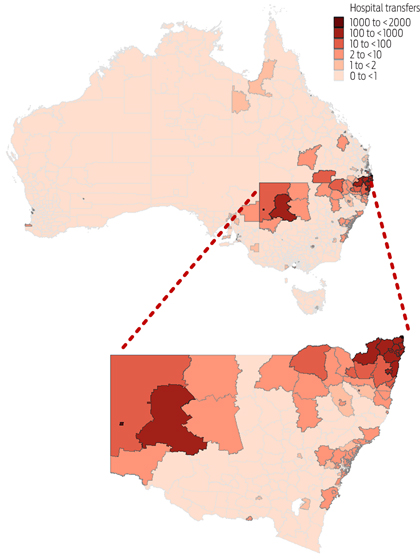 Typically, single-jurisdiction studies investigating hospital use and hospital-related deaths have been unable to account for patients crossing state borders. This is problematic for densely populated border regions like northern New South Wales, for example, where patients are likely to attend specialist hospitals in Queensland.