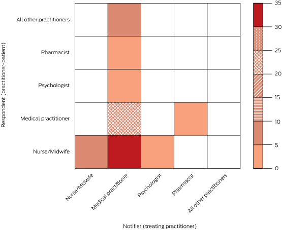 Box 2 – Frequency of notifications, by professions of treating practitioner and practitioner-patient