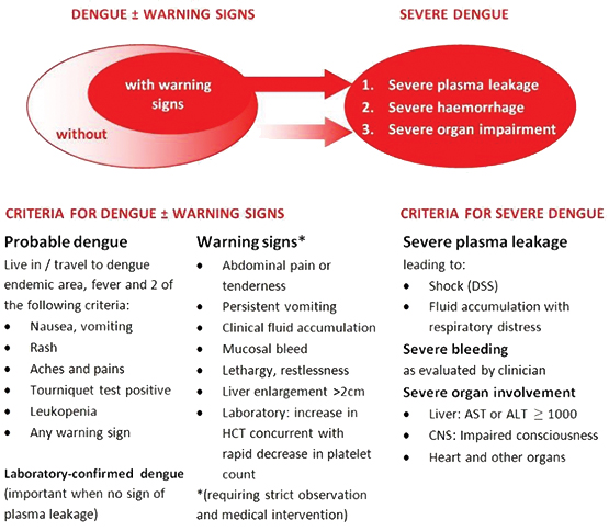 The revised 2009 WHO guidelines are based on validation studies from DF-endemic countries,3 and classify cases into DF, DF with warning signs and severe DF.2 In travellers, warning signs may also predict progression to severe dengue.4,5