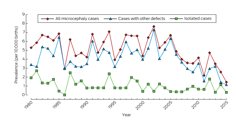 Because of the many travellers returning from Zika-affected countries and the potential for Zika virus transmission to become established in Australia, we report baseline data on the prevalence and characteristics of microcephaly in a geographically defined Australian population over a 35-year period (1980–2015).