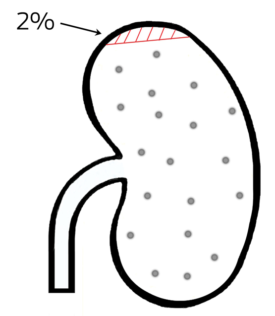 Box 3 – Template to explain residual renal function of 2% (hatched area) in an otherwise sclerosed kidney (dots)