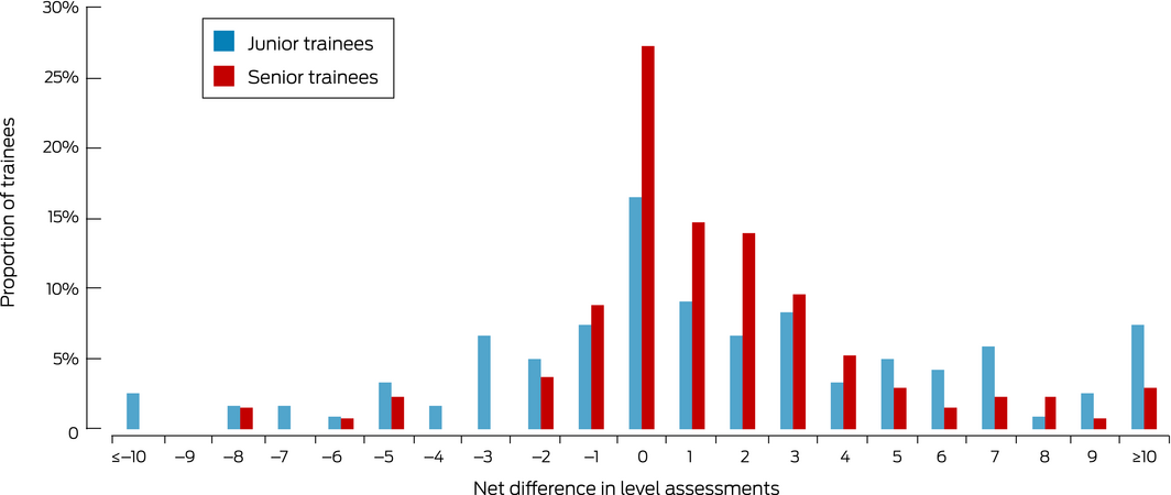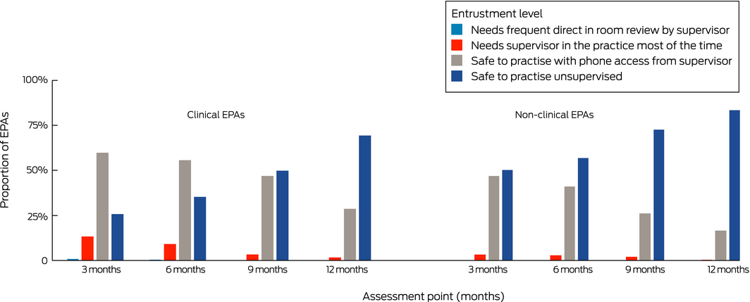 As is often the case in education research,29 the generalisability of our findings is limited, as we examined a specific set of EPAs in a single postgraduate setting. Anchoring bias (that is, an assessment being influenced by an initial piece of information) may have resulted from the supervisors knowing the level of training of trainees. We attempted to minimise anchoring by ensuring that supervisors did not have easy access to earlier EPA ratings during the 6‐, 9‐ and 12‐month assessments. As we preferred ecological validity to being able to draw causal conclusions, we did not include a control group in our study. The differences we found were of a magnitude rarely seen in naturalistic field studies, in which ecological validity is more important than optimising the comparability of groups and isolating individual factors.