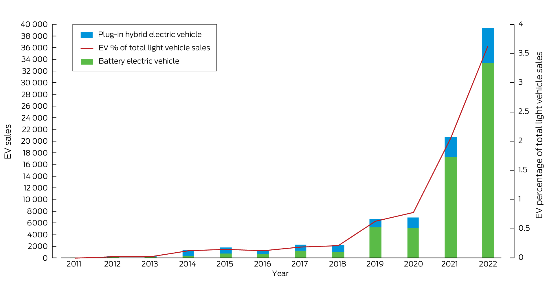 Box 12 – Annual electric vehicle (EV) sales in Australia, 2011–2022