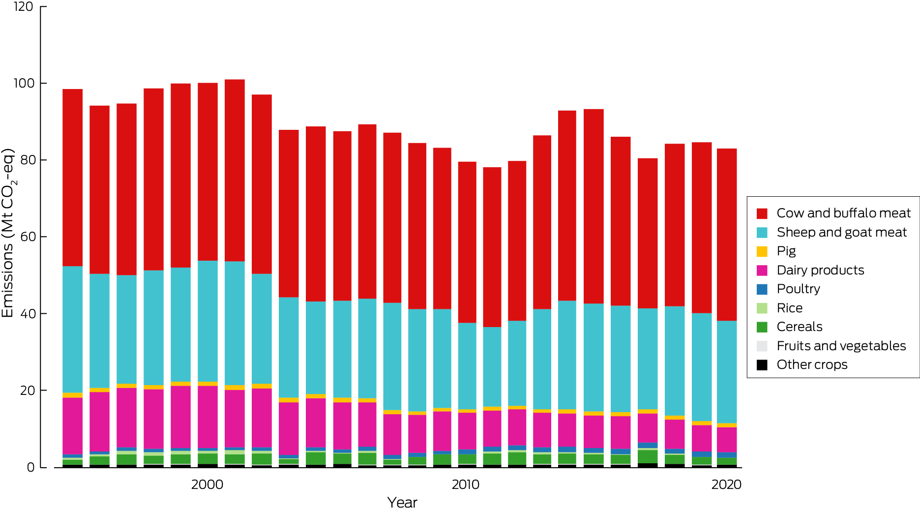 Box 13 – Greenhouse gas emissions from food production in Australia by commodity between 1995 and 2020