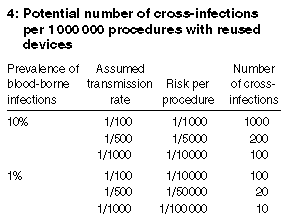 Another factor to be taken into account is how many times a device is reused. If it is reused on 20 different patients, the cumulative risk of the device becoming contaminated with a blood-borne infection will be higher than in our estimates.